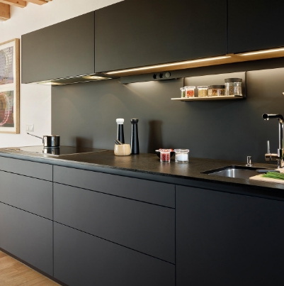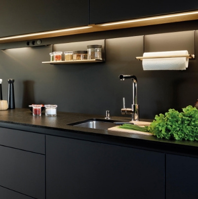 Jak se podíváte blíže, uvidíte, že skříňky a zásuvky jsou navrženy tak, aby poskytovaly maximální úložný prostor, zatímco spotřebiče jsou umístěny pro snadnou přístupnost a pohodlí při vaření. Například trouba je umístěna ve výšce očí pro snadné sledování vaření, zatímco lednice je umístěna na dosah ruky od místa přípravy potravin.